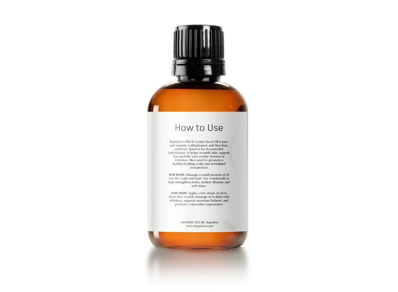 Kapridon’s Black Cumin Seed Oil is pure and natural, cold-pressed, and free from additives. It is known for its powerful antioxidants, helps nourish skin, supports hair growth, and soothes dryness or irritation. Also used to promote a healthy-looking scalp and revitalized complexion.